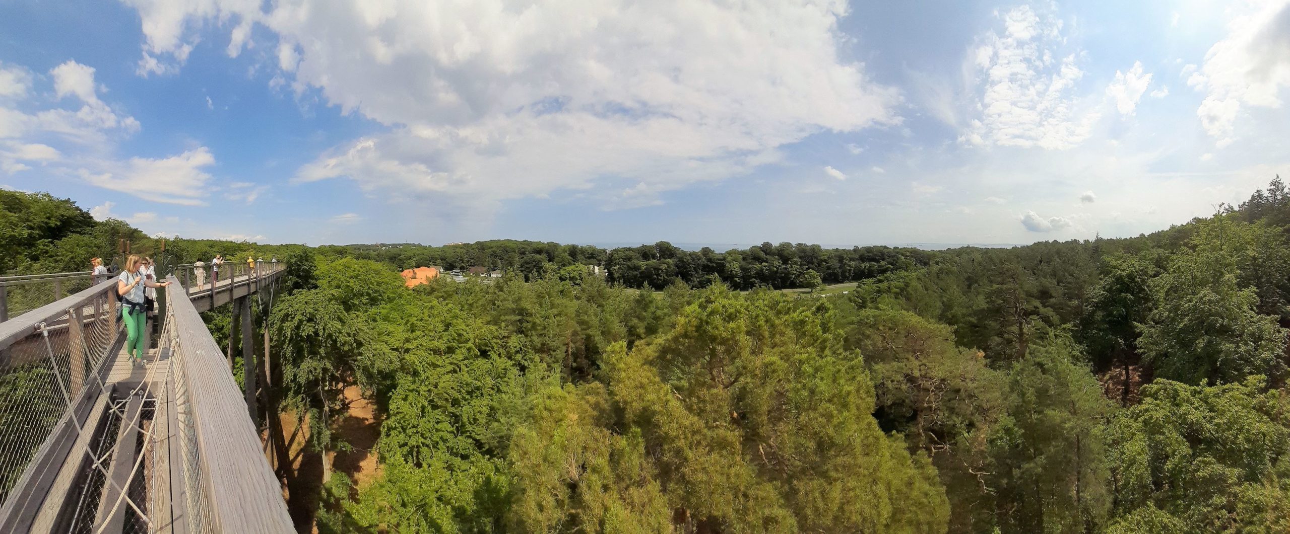 Ein weiterer Höhepunkt des Tages war der Baumwipfelpfad als Beispiel für eine Investition , die das touristische Angebot der Region bereichert. Die Einrichtung wurde im Juni 2021 eröffnet – in einer für Unternehmen schwierigen Zeit während der Pandemie. Die Marketingleiterin Frau Kinga Abraham berichtete in einem Vortrag über die Idee des Projekts und seine Entwicklung. Der anschließende Aufstieg bis auf eine Höhe von 75m über dem Meeresspiegel wurde mit einem fantastischen Rundblick über große Teile der Insel und den weltberühmten Usedomer Sandstrand bis nach Swinemünde belohnt.